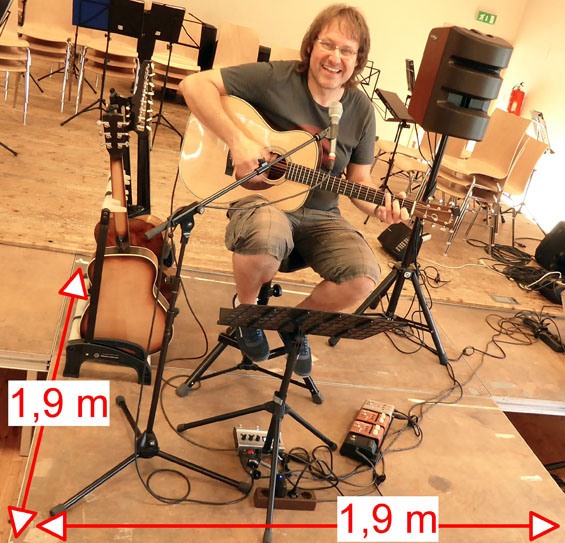 Anbei eine Foto, welches die Art und Größe meines Bühnenaufbaues zeigt.